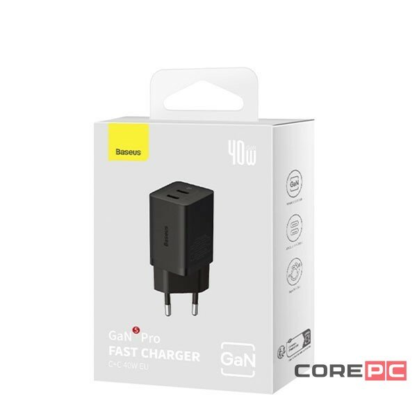 Сетевое зарядное устройство Baseus GaN5 Pro Fast Charger C+C 40W EU, CCGP180101, черный