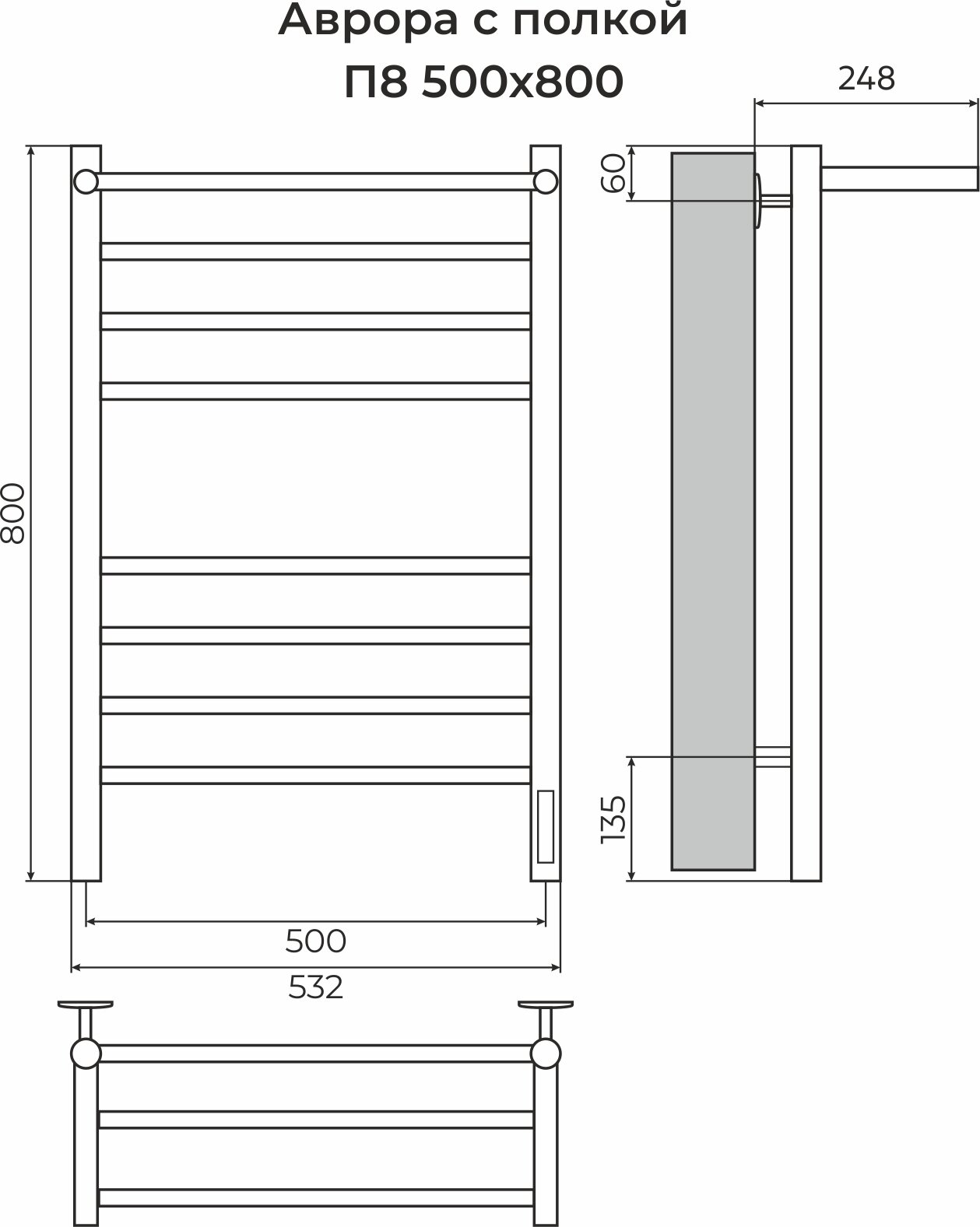 Полотенцесушитель Электро TERMINUS Аврора 500х800 П8 КС9003 матовый
