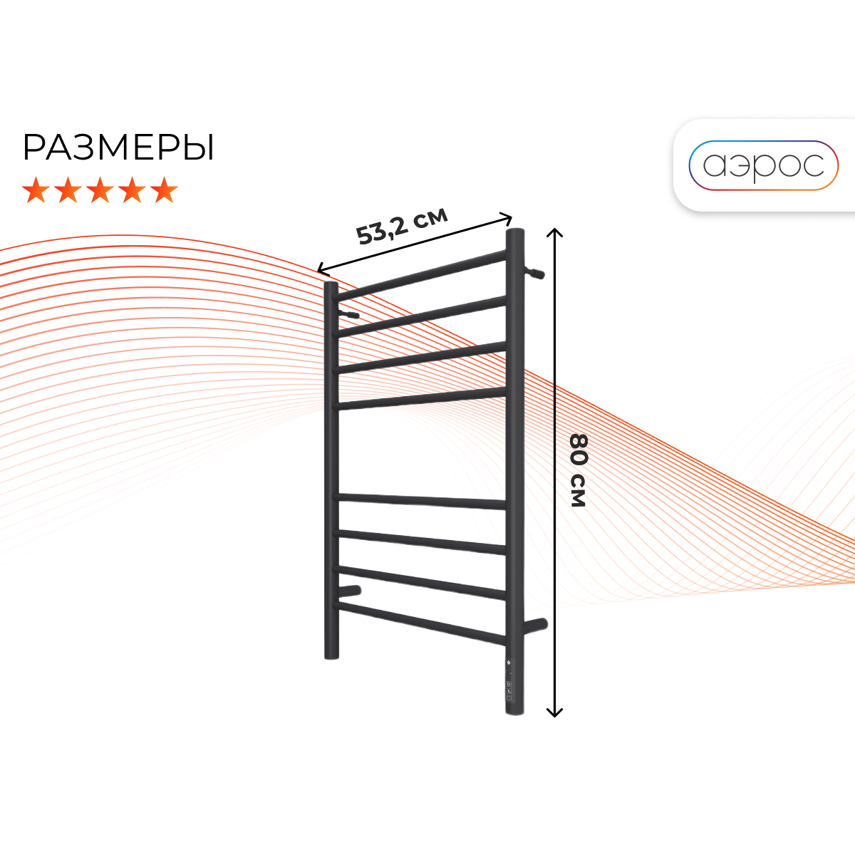 Электрический полотенцесушитель с терморегулятором из стали для ванной черный правый ТЭН 50 х 80 см / Аврора Terminus