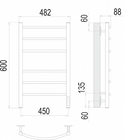 Купить Полотенцесушитель электрический Terminus Классик П6 450х600 черный матовый 4670078527578