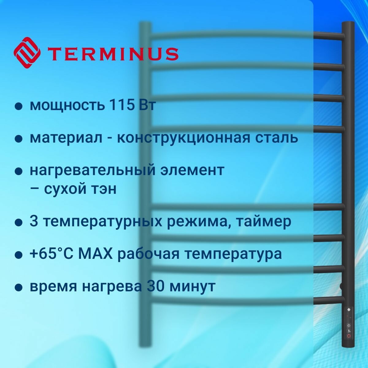 Полотенцесушитель электрический Terminus Классик П8 500x800, матовый чёрный