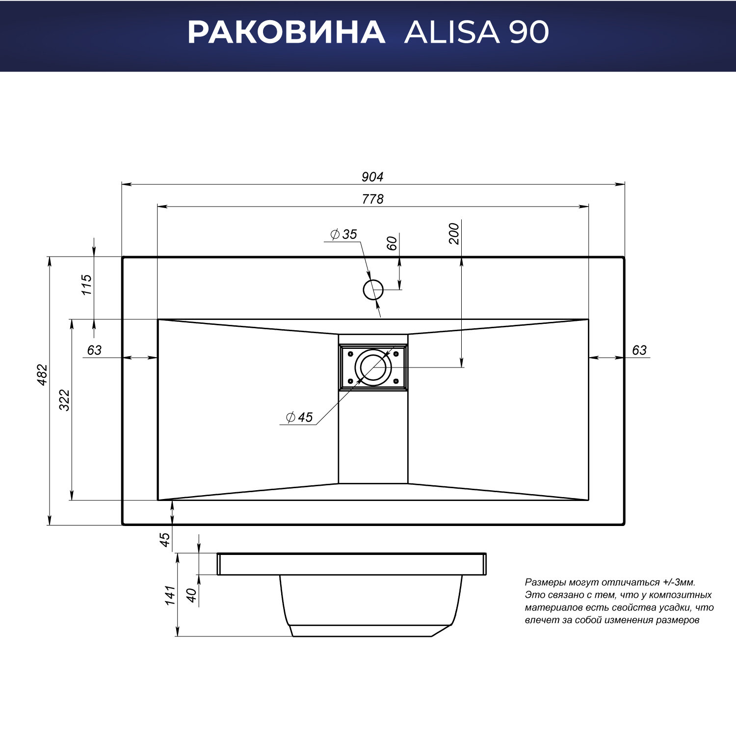 Раковина в ванную Alisa 90 900х480х145 интересное: