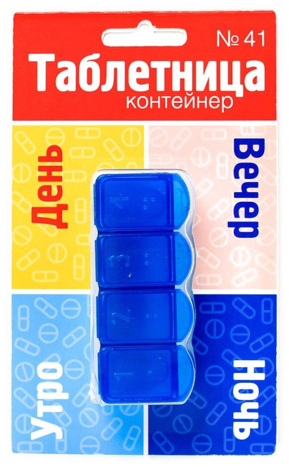 Таблетница 4 приема, синяя интересное: