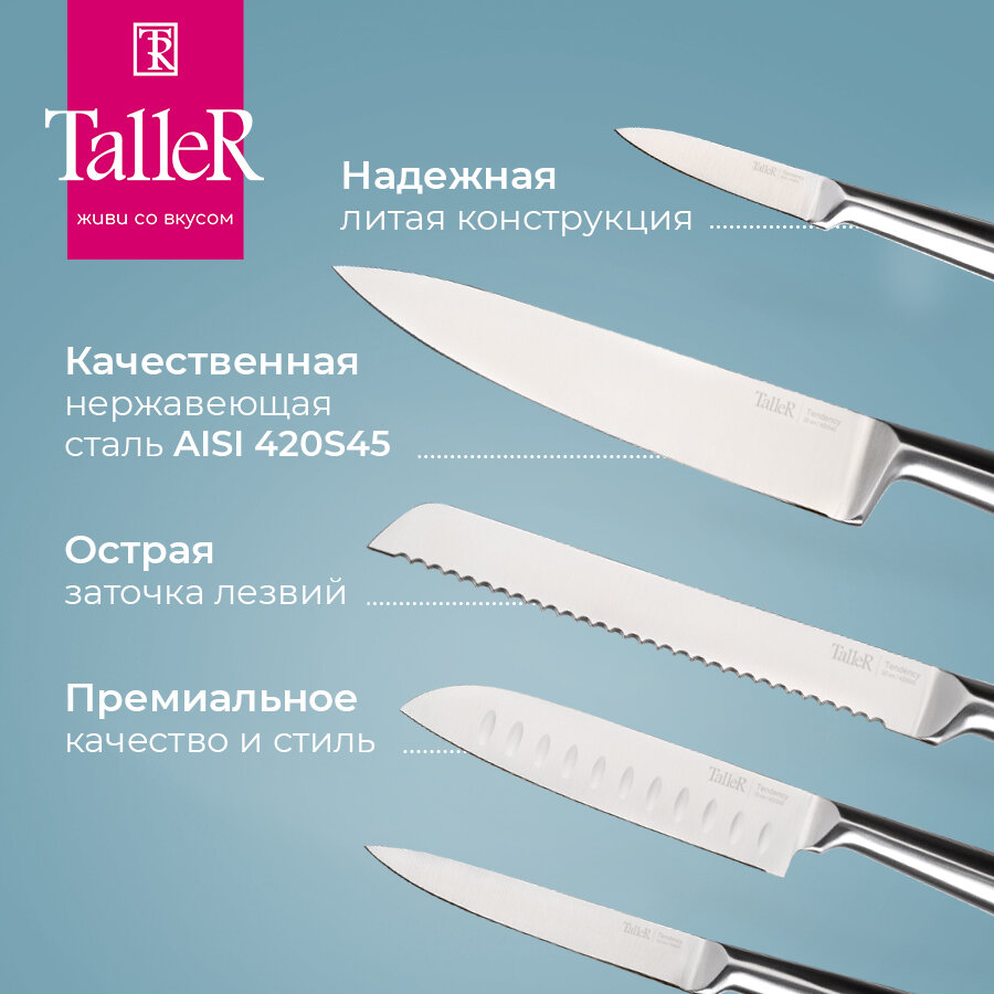 Набор универсальных кухонных ножей TalleR TR-22014, нержавеющая сталь