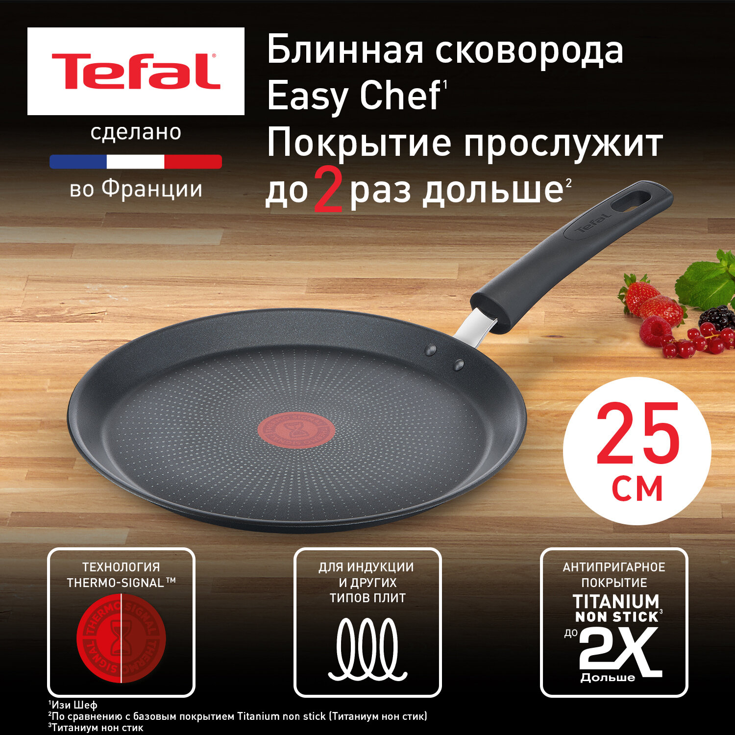 Индукционная сковорода для блинов 25 см Tefal Easy Chef G2703823, с индикатором температуры, с антипригарным покрытием, для всех типов плит, сделано во Франции