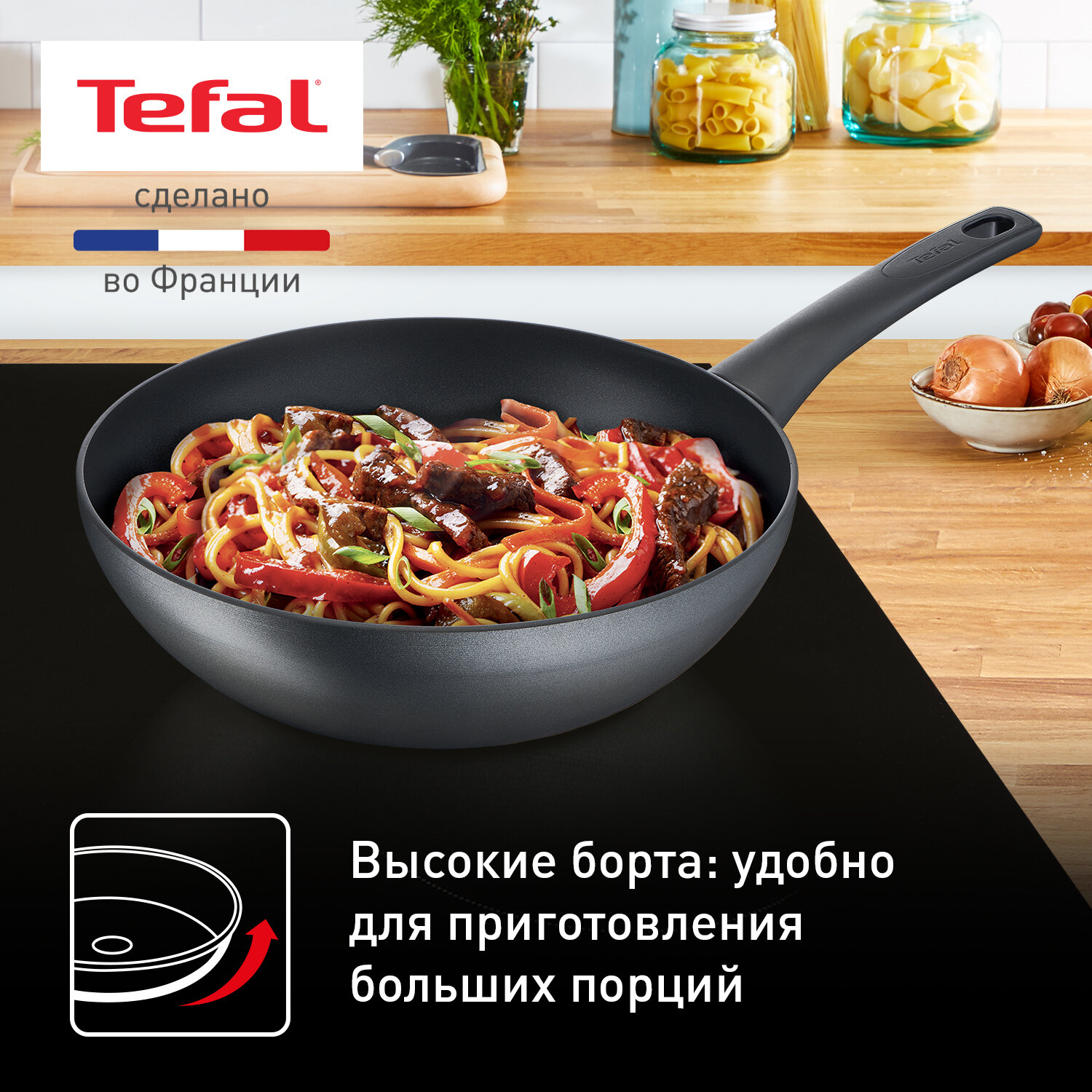 СохранитьСковорода вок Tefal Easy Chef G2701972 28 см, с антипригарным покрытием, подходит для индукции, сделано во Франции интересное: