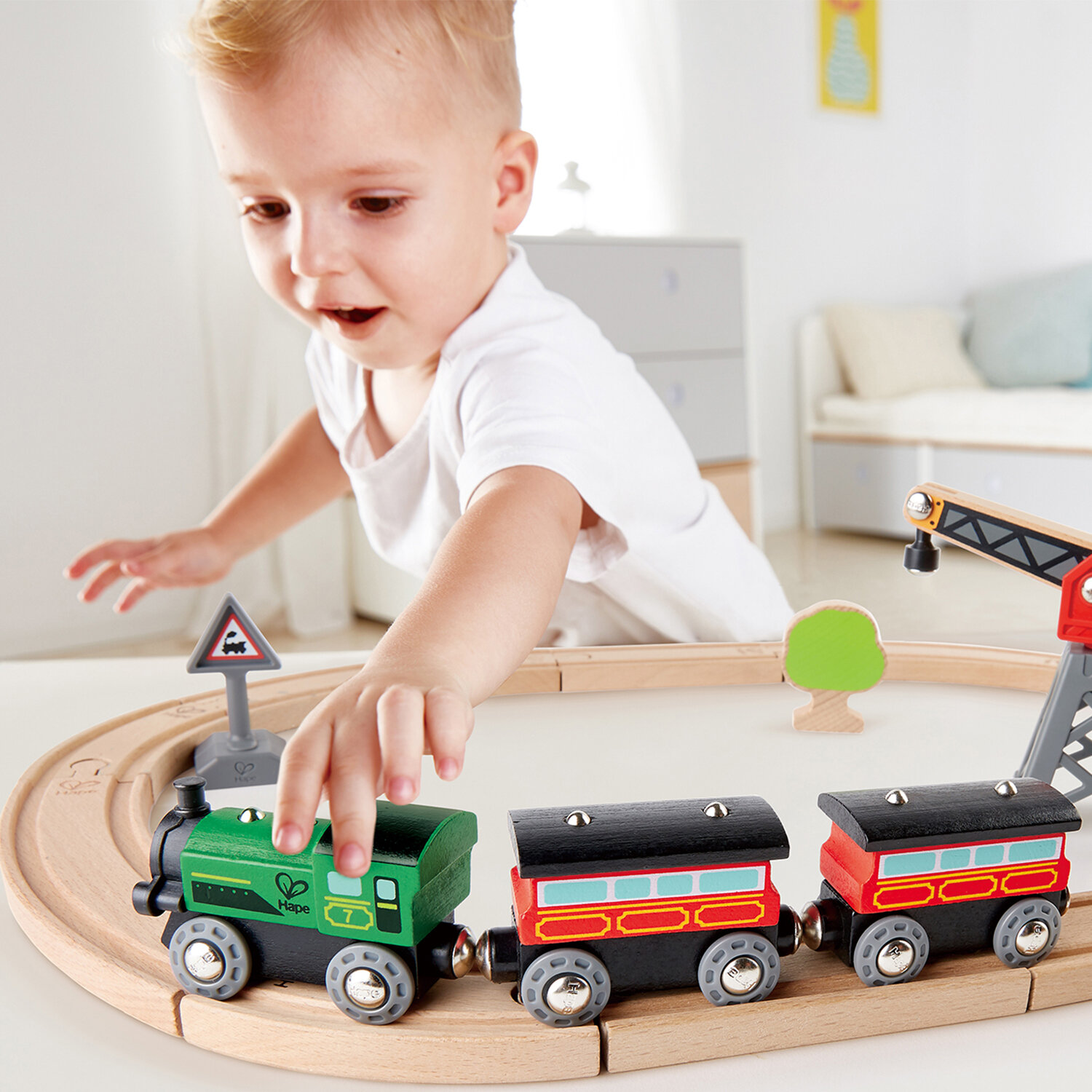 Детский игрушечный пассажирский поезд Hape для железной дороги E3719_HP интересное: