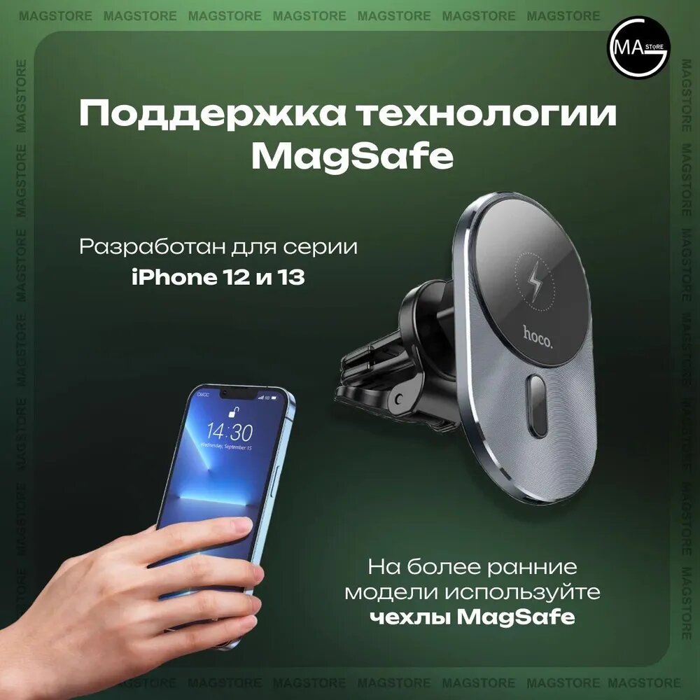 Держатель c беспроводной зарядкой в воздуховод Hoco CA91 (MagSafe) 15W магнитный черный