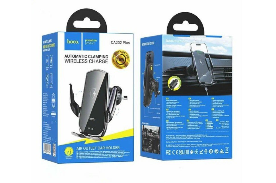 Купить Держатель c беспроводной зарядкой в воздуховод Hoco CA202 Plus 15W черный