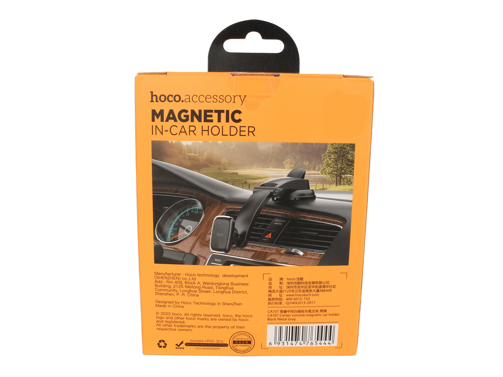 Автомобильный держатель HOCO CA107 Center console, магнитный, на приборная панель/лобовое стекло, черный+серый металлик