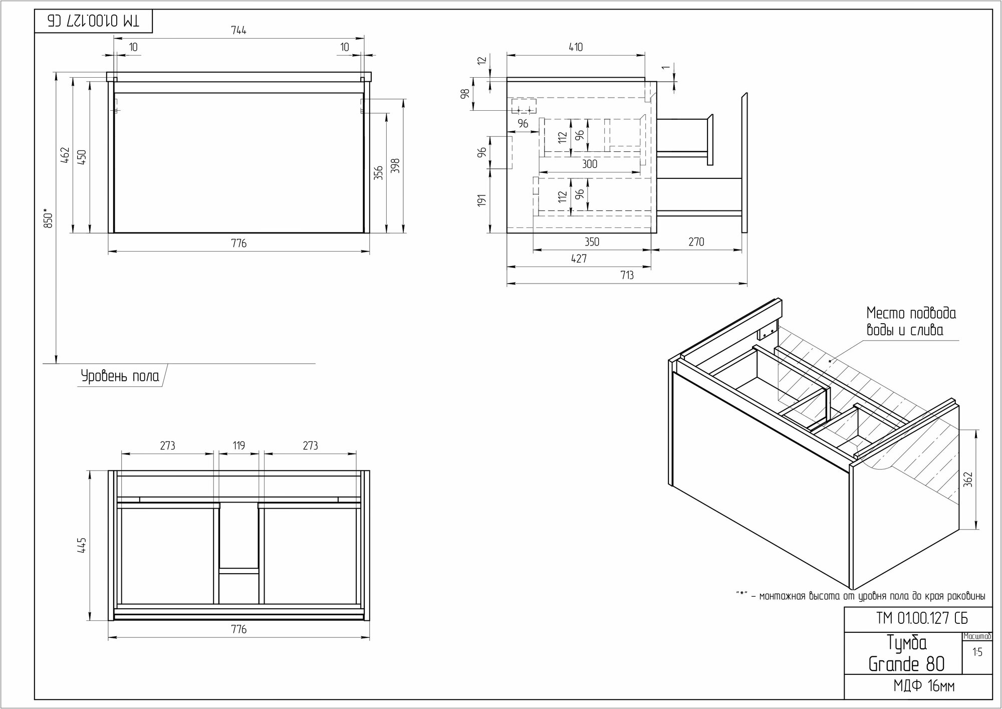 СохранитьТумба под раковину Cersanit Grande 80 бежевый 64310 интересное: