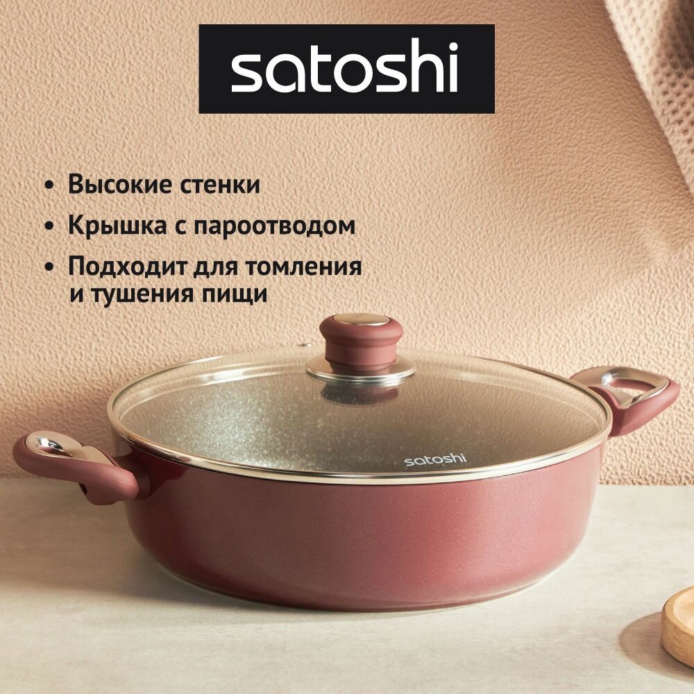 Сотейник 28 см SATOSHI Ла Мери литой 4,3 л с крышкой, антипригарное покрытие мрамор, индукция, 2 ручки интересное: