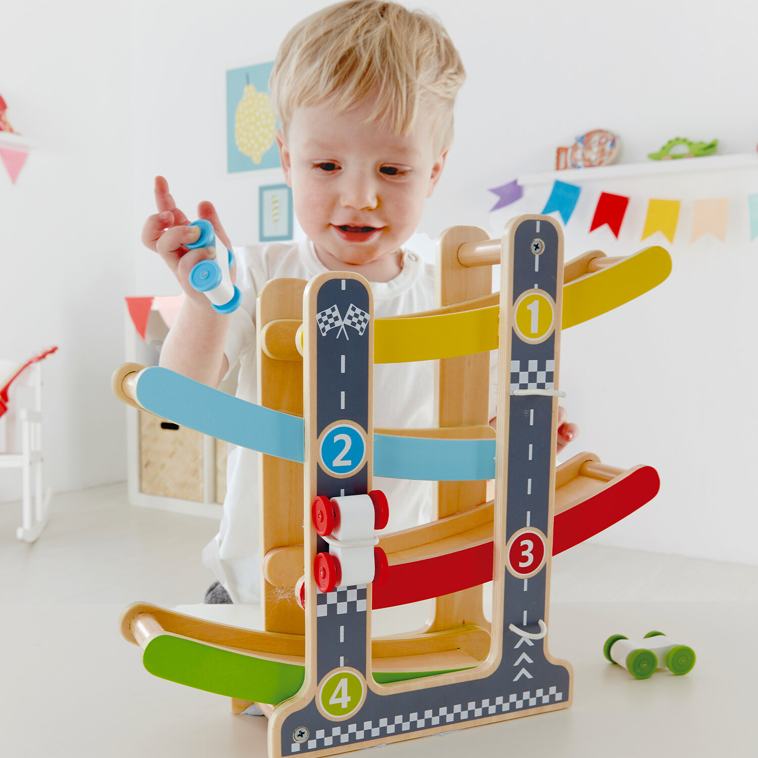 Купить Автотрек Hape "Быстрый переворот" E0438_HP, с машинками для мальчиков и девочек
