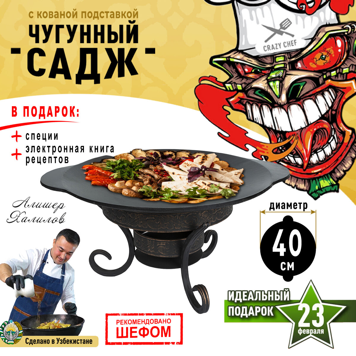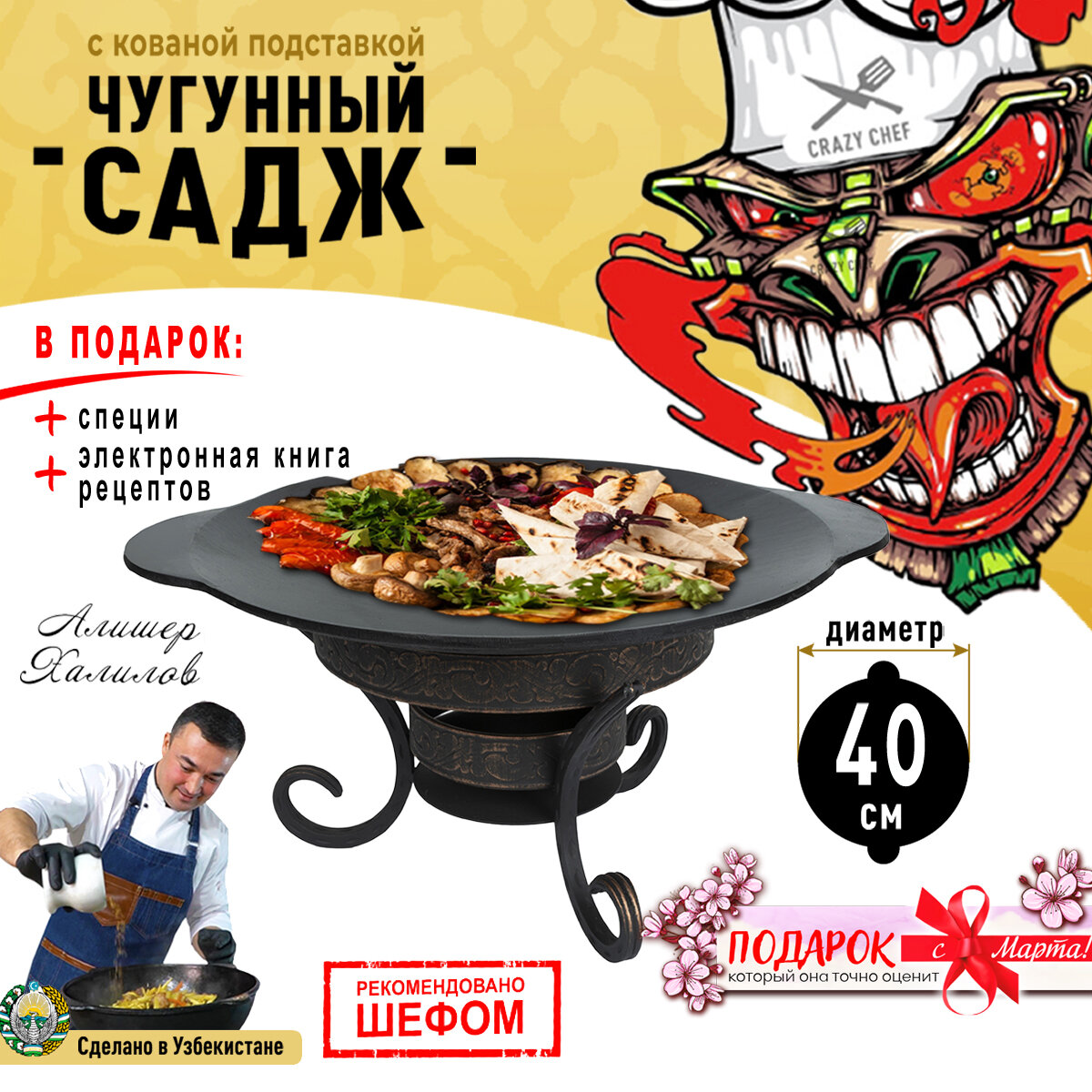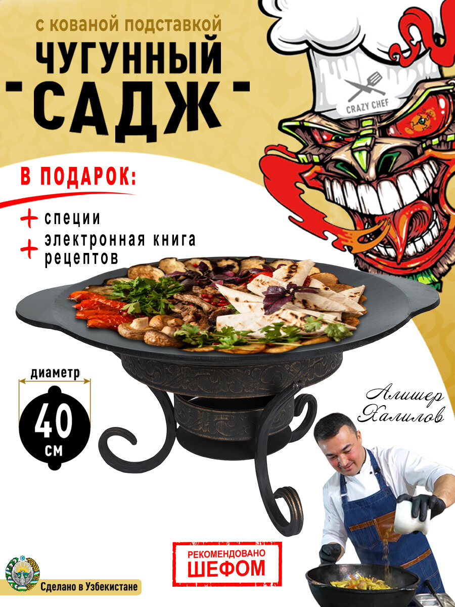 Сковорода Садж чугунный для мангала жаровня с кованной подставкой 40 см интересное:
