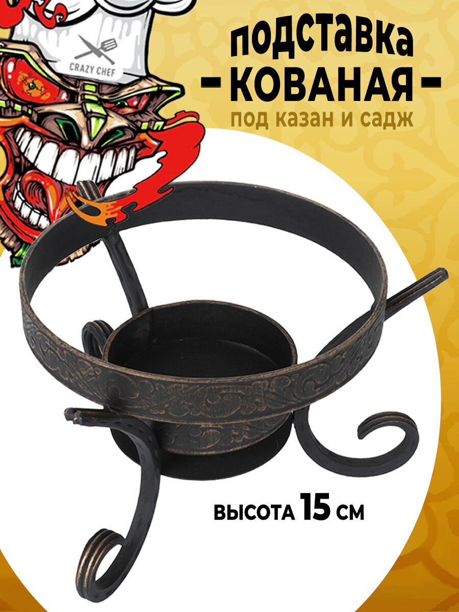 Садж чугунный 40 см с кованной подставкой 22.5 см.