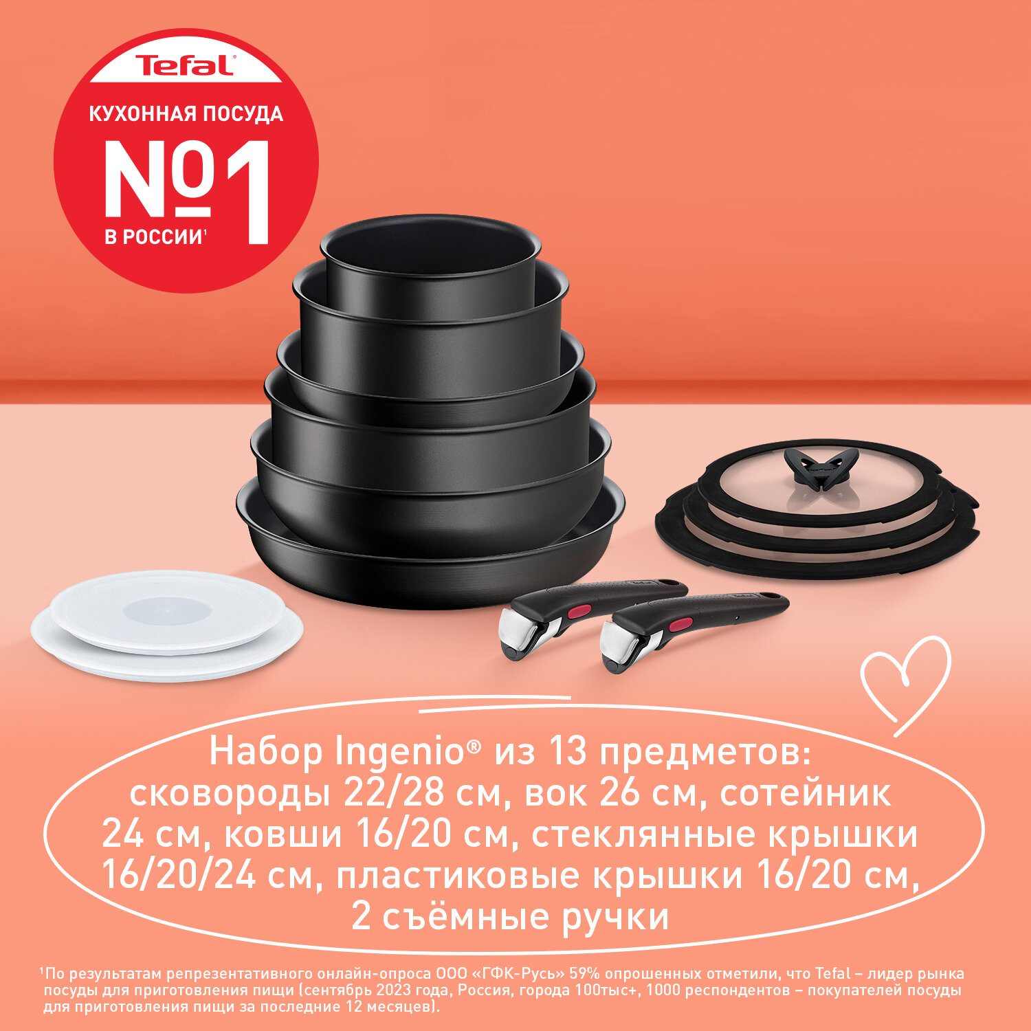 Набор посуды со съемной ручкой Tefal Ingenio Unlimited L7639002, 13 предметов, подходит для индукции