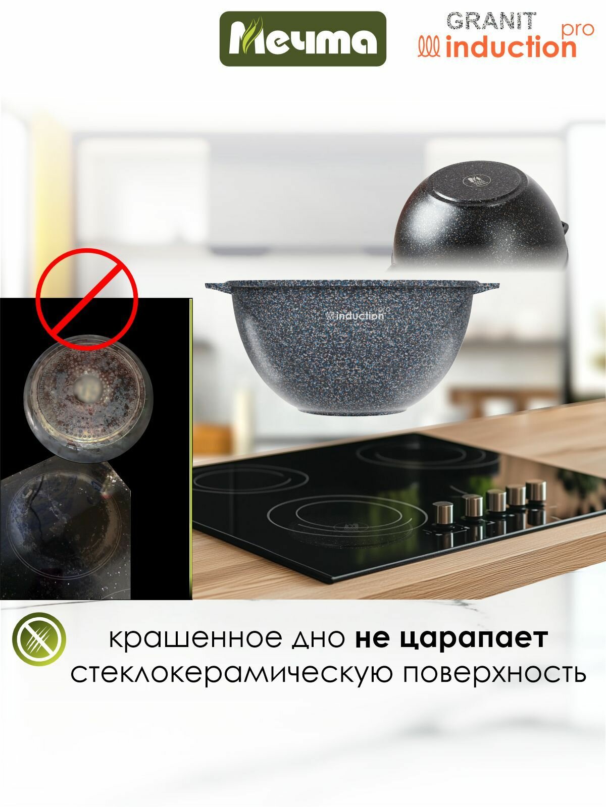 Казан алюминий, антипригарное покрытие, 4.5 л, Гранит black Induction Pro, с крышкой, Мечта, 54802И