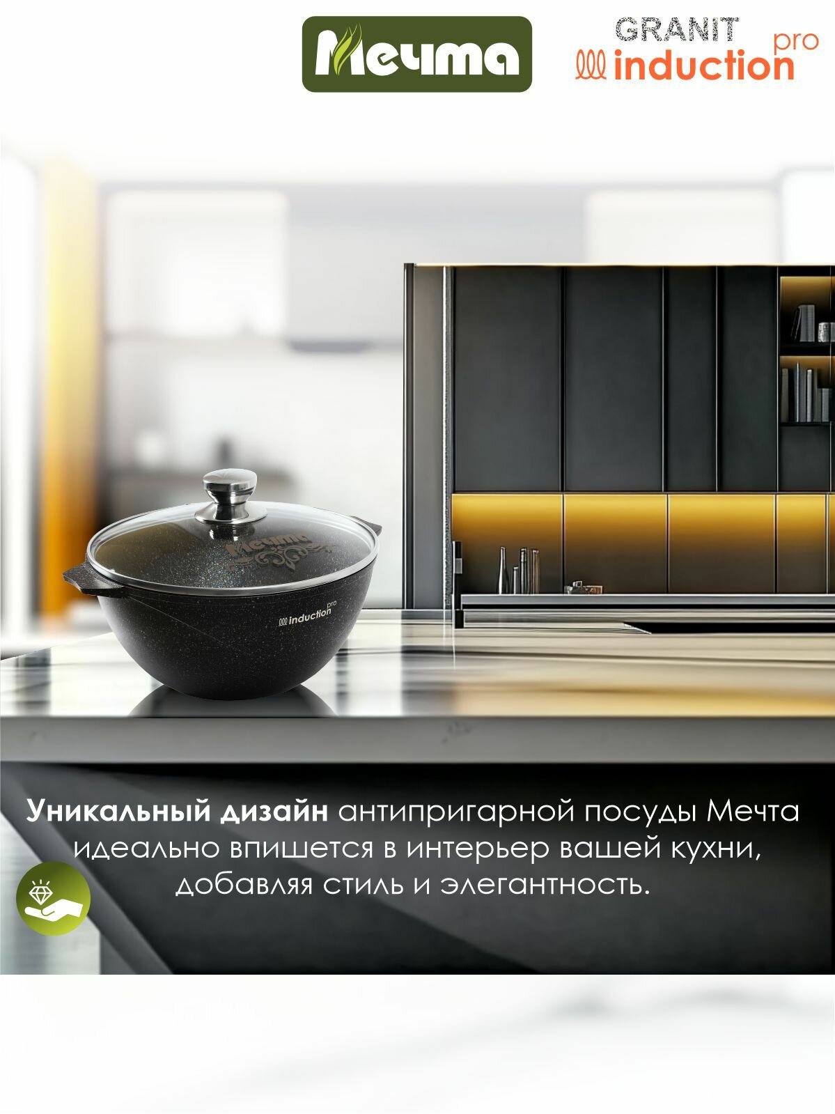 Казан Мечта Гранит Blaсk Induction Pro 54802И, черный гранит, крышка стекло