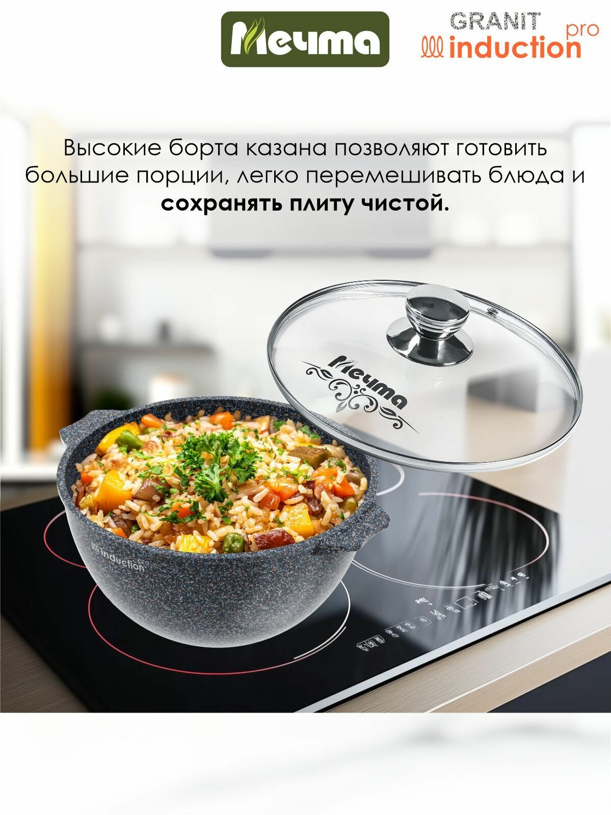 Индукционный казан для плова Мечта black induction pro 4 л, с антипригарным покрытием, гранит 54802И