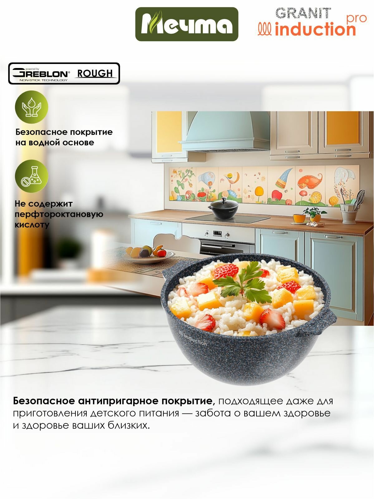 Казан для плова Мечта 4,5 л Гранит с антипригарным покрытием с крышкой, индукционный