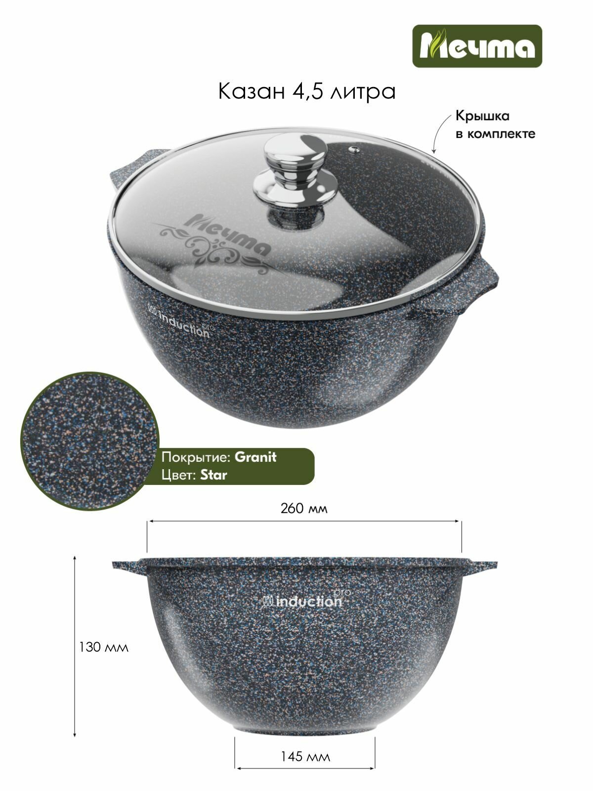 Казан Мечта АП 4,5л индукция стеклянная крышка Гранит Black