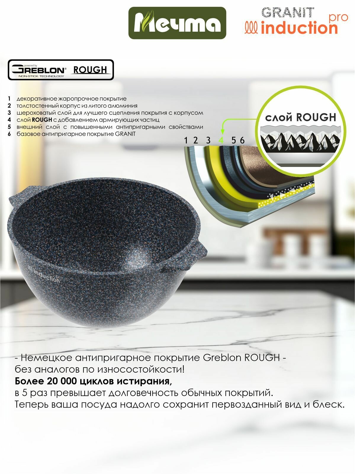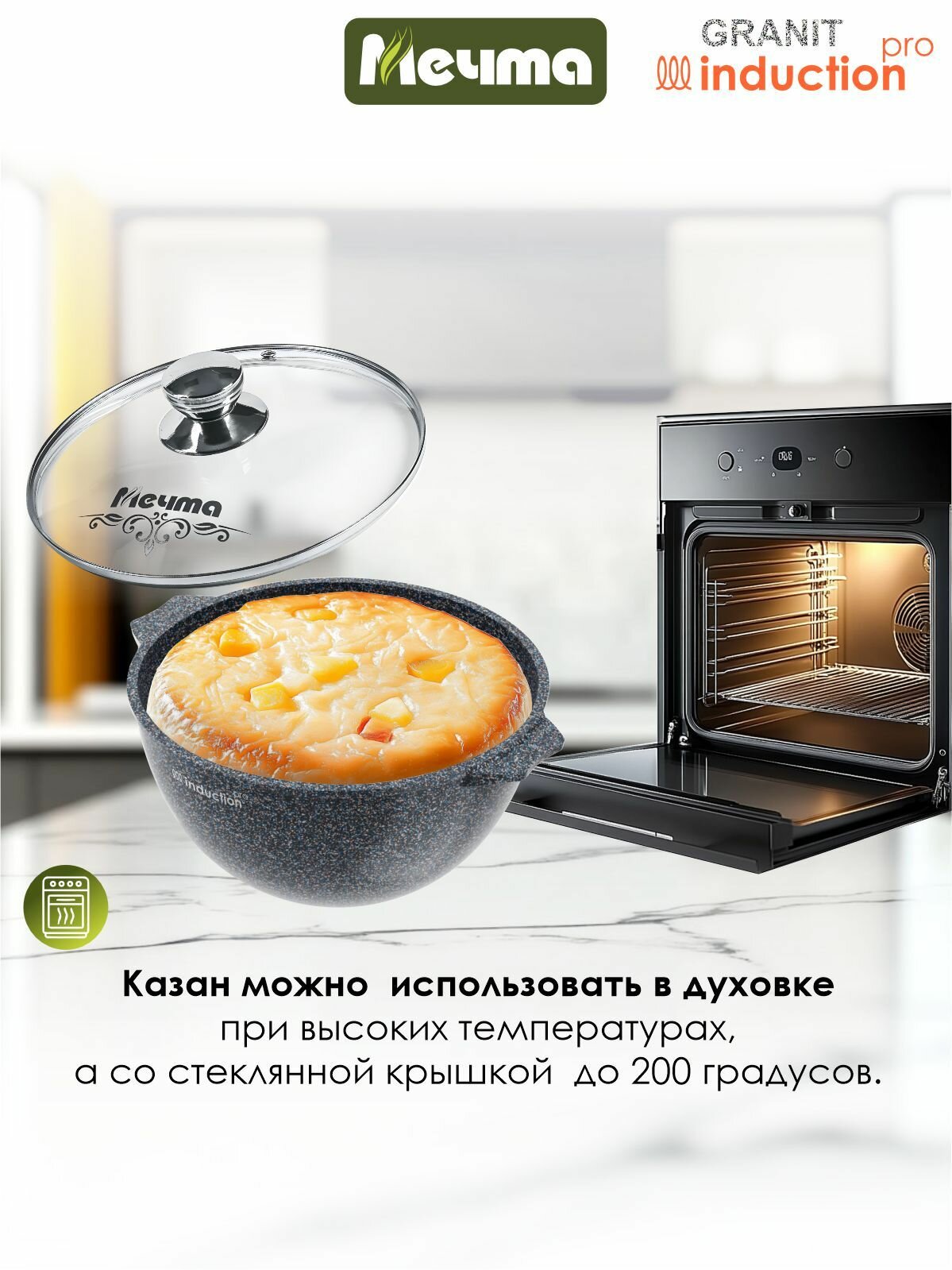 Купить Казан для плова индукционный "Мечта" 4,5л Гранит с антипригарным покрытием с крышкой, можно мыть в посудомоечной машине