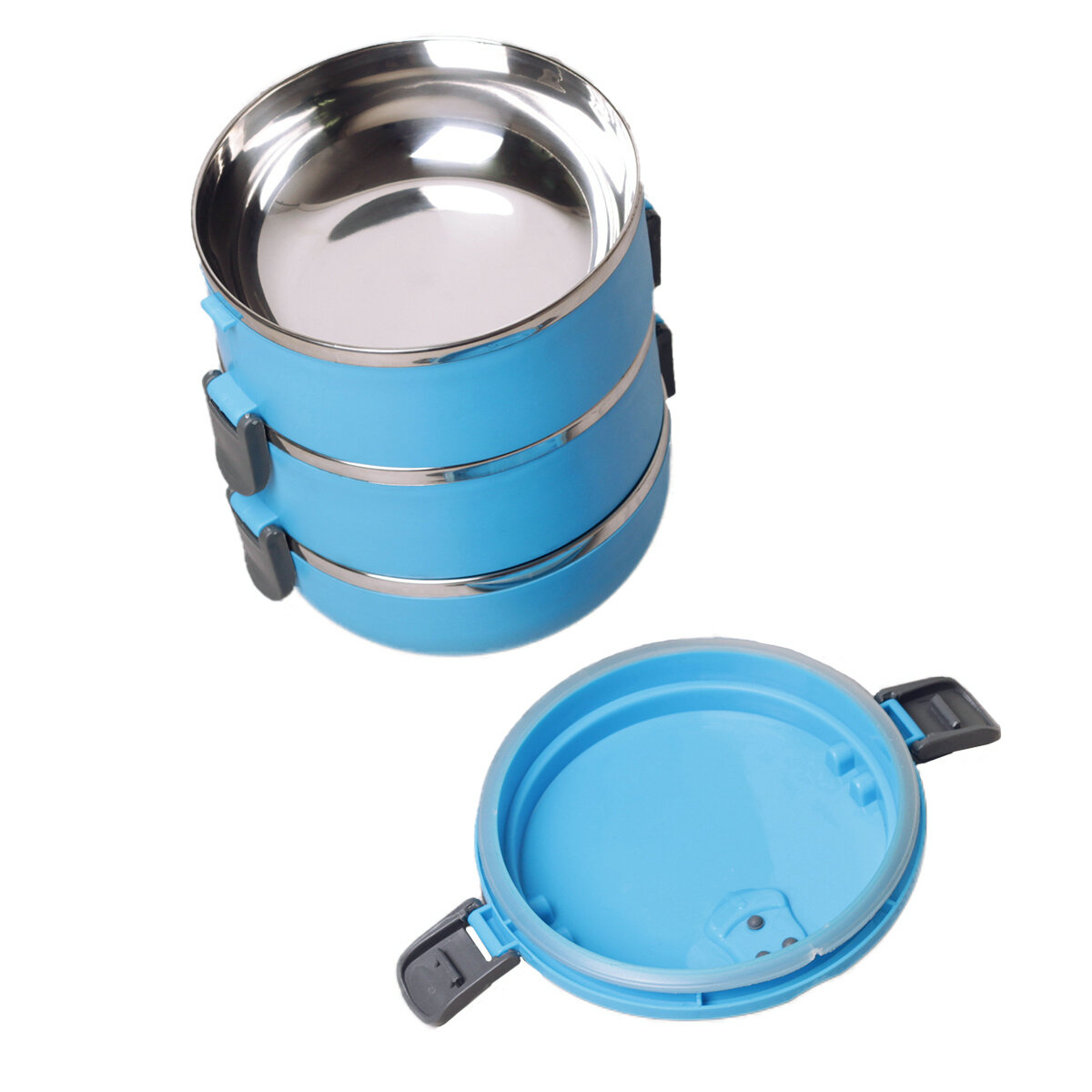 Ланч бокс тройной 2100 мл. круглый Kamille KM-2107 (пластик, нержавеющая сталь) (2107 / голубой) интересное: