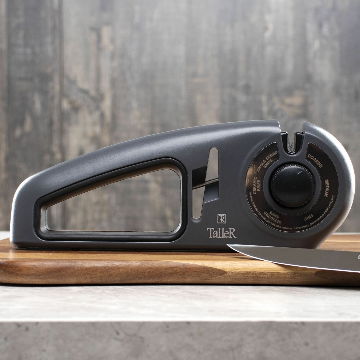 | Дополнительная информация | Механическая точилка для ножей Taller TR-2507, сталь/керамика, черный/красный |