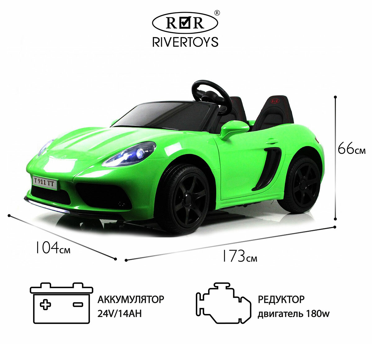 RiverToys Детский электромобиль T911TT зеленый глянец