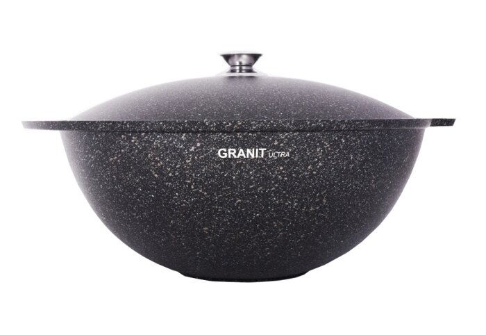 Казан антипригарный литой 6,0л для плова с алюминиевой крышкой Granit ultra original ТМ KUKMARA