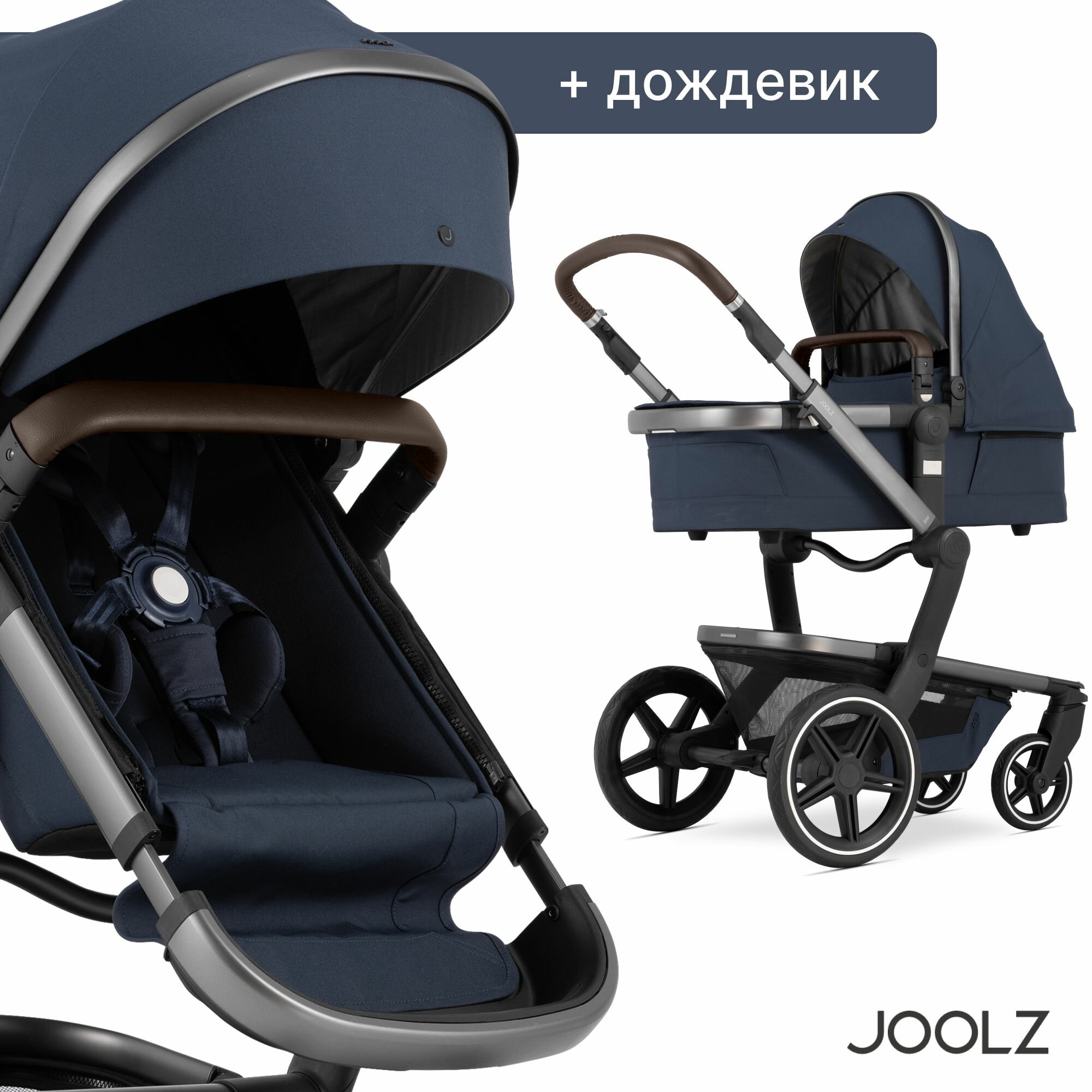 Купить Коляска 2 в 1 Joolz Day+ Navy Blue с дождевиком, синяя, детская коляска трансформер с люлькой и прогулочным сиденьем, для детей с рождения и до 3 лет