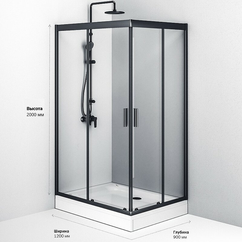 Купить Душевой уголок AM.PM Gem 120х90 W90G-404-120290-BT профиль Черный матовый стекло прозрачное