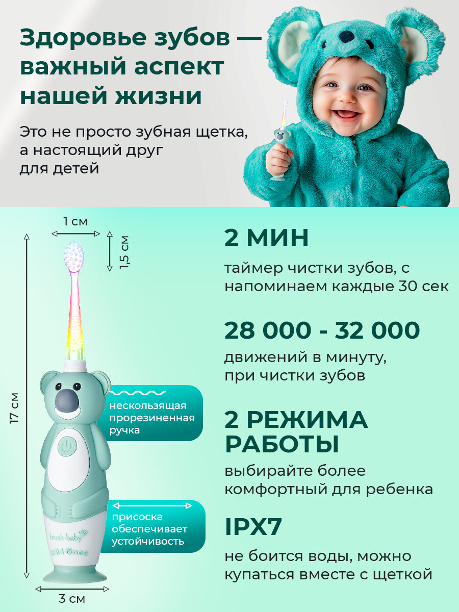 СохранитьЗвуковая электрическая зубная щетка Brush-Baby Sonic Коала 0-10 лет интересное: