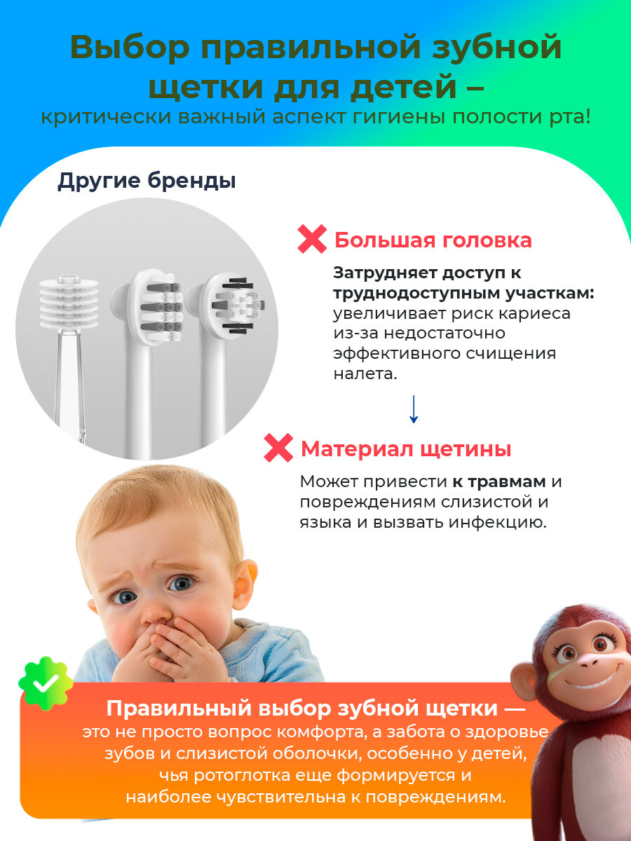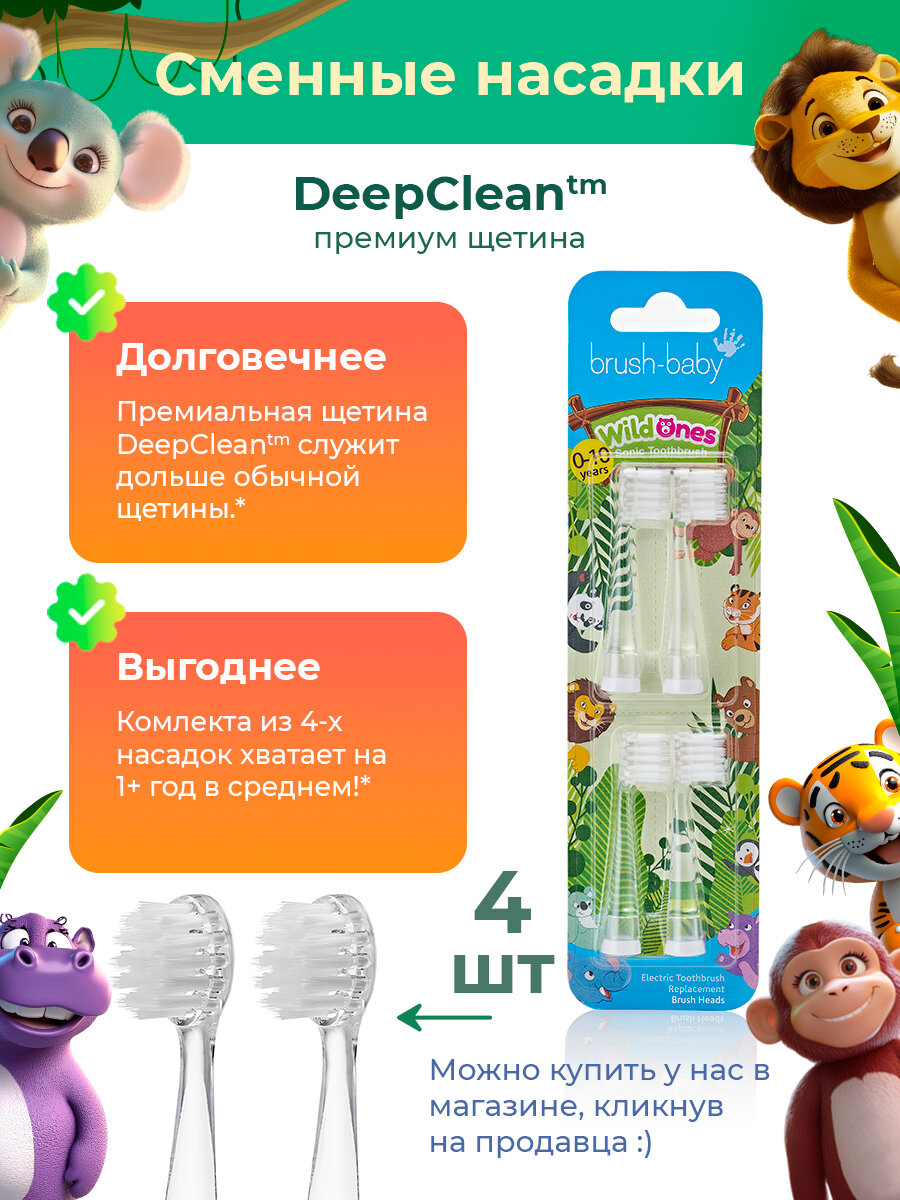 СохранитьЗвуковая электрическая зубная щетка Brush-Baby Sonic Обезьяна 0-10 лет интересное: