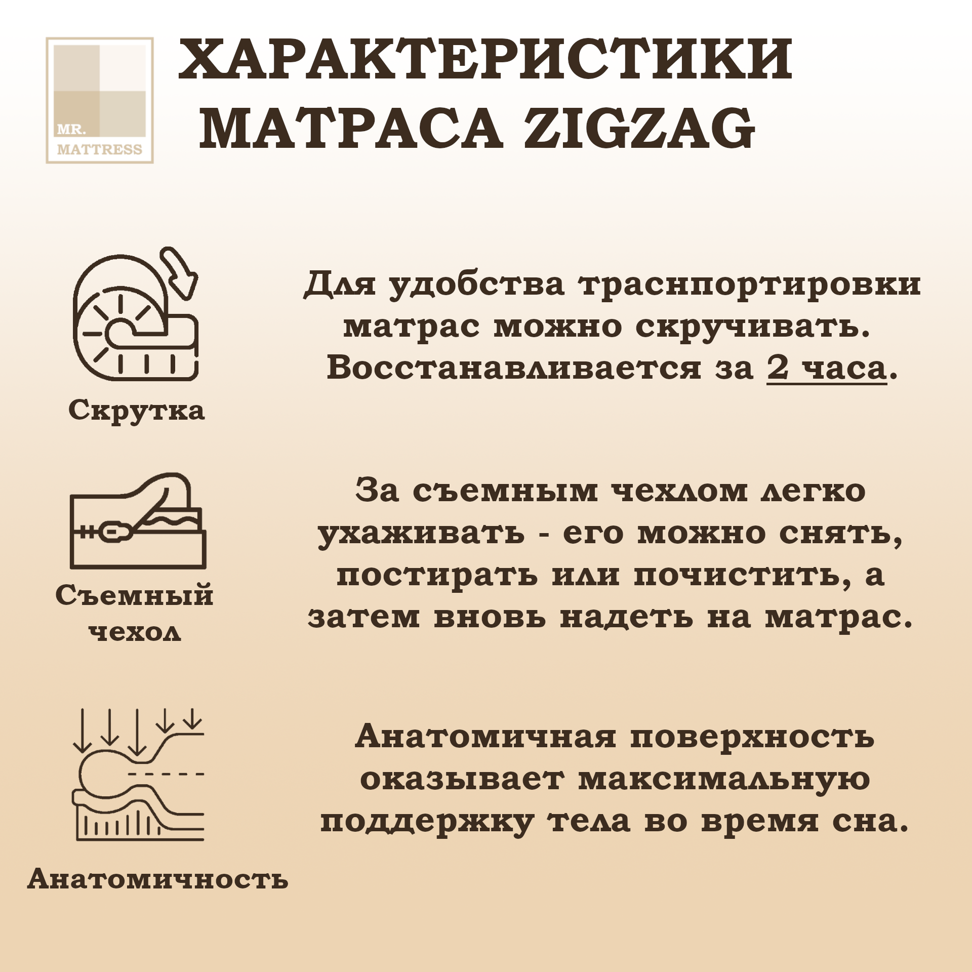 Ниже Вы можете прочитать отзывы на Беспружинный матрас Mr. Mattress Zigzag 120x195, ознакомится с подробными характеристиками, посмотреть интересные обзоры и фотографии на Беспружинный матрас Mr. Mattress Zigzag 120x195.