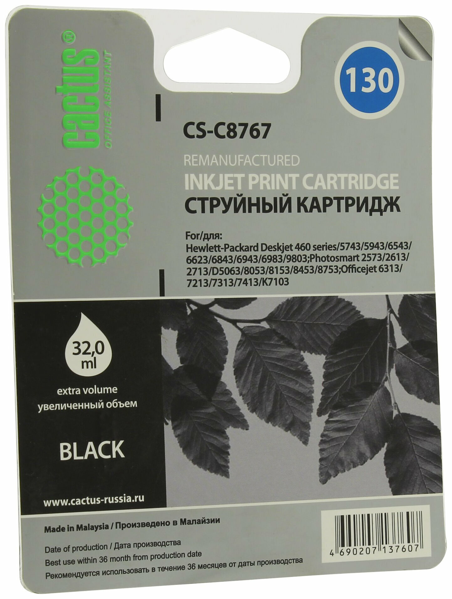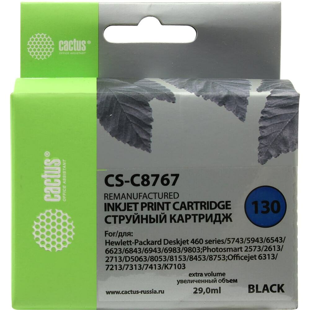 Картридж струйный Cactus CS-C8767 №130 черный (29мл) для HP DJ 5740/5743/5745/5748/5793/5940/5943/6540/6540d/6540dt/6543/6543d/6620/6623/6840/6843/6940/6940dt/6943/6980series/6980dt/6983/6985/9800series/9860/DJ 6310/6310xi/6313/6315/6318
