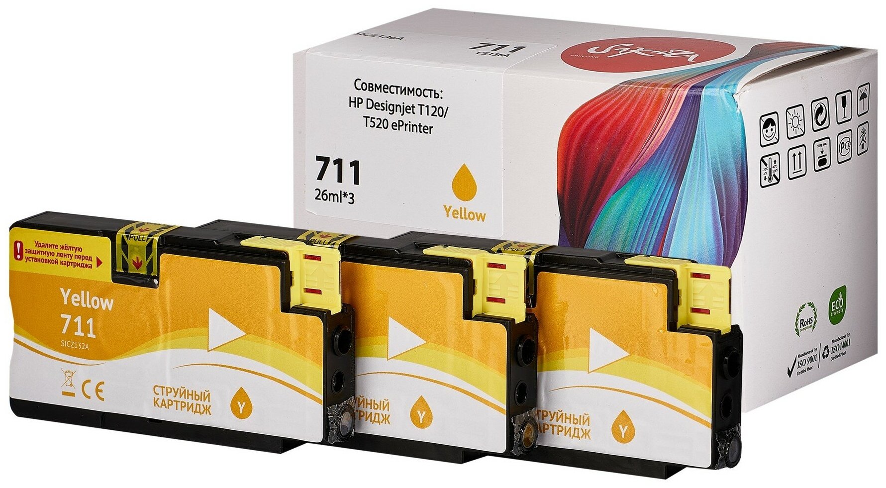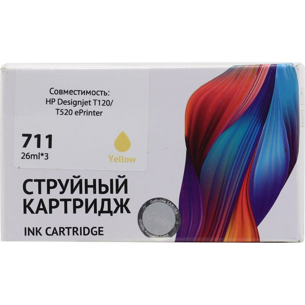 Купить Набор картриджей CZ136A (№711 Yellow 3-pack) для HP, струйный, желтый, 26 мл, Sakura