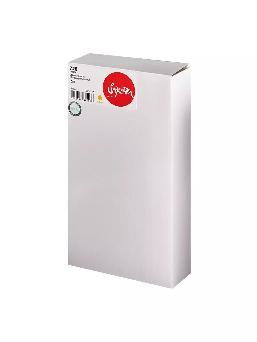 Купить Картридж F9K15A (№728 Yellow) для HP, струйный, желтый, 300 мл, Sakura