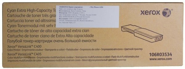 Картридж Xerox 106R03533, ресурс страниц 8000, желтый, оригинальный для VL С400/С405