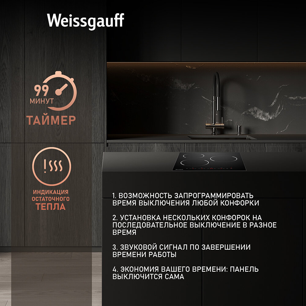 Стеклокерамическая панель Weissgauff HV 430 B индикация остаточного тепла, 45 см ширина, таймер интересное: