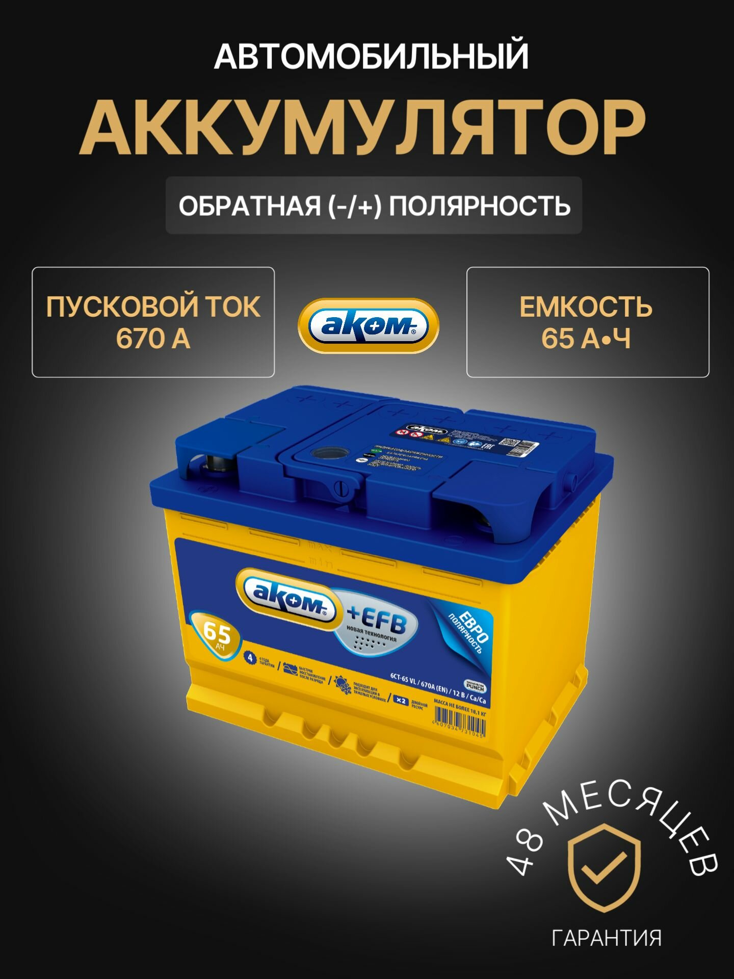 Автомобильный аккумулятор Аком + EFB 65E (670 А), 242х175х190, полярность обратная
