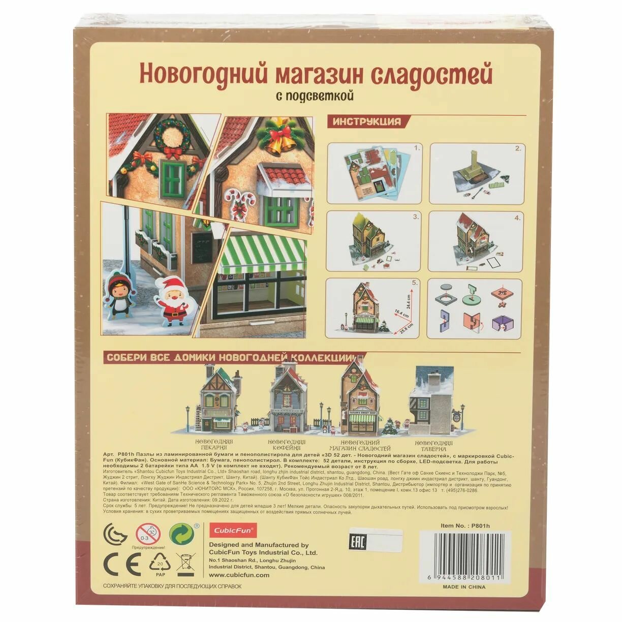 Пазл CubicFun Новогодний магазин сладостей с LED-подсветкой 3D 52элемента P801h