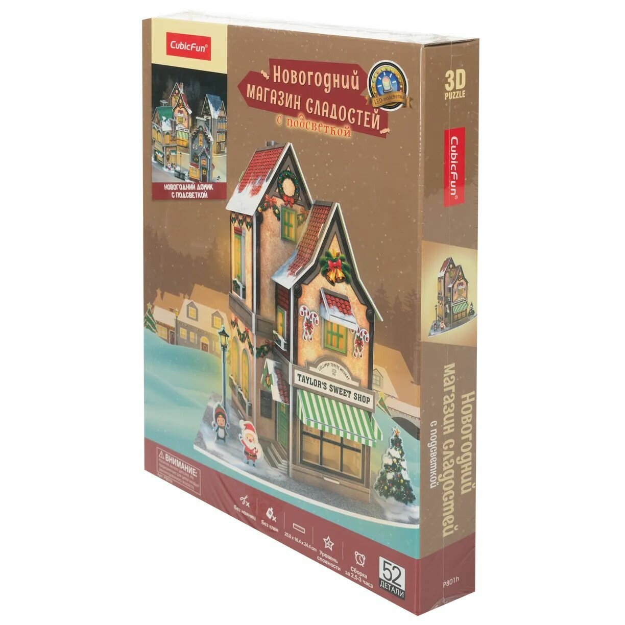 3D Пазл с LED - подсветкой Новогодний магазин сладостей, 52 детали (P801h)