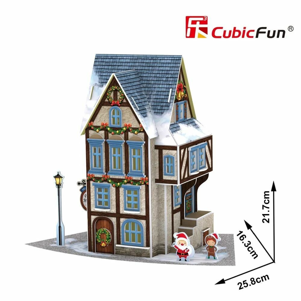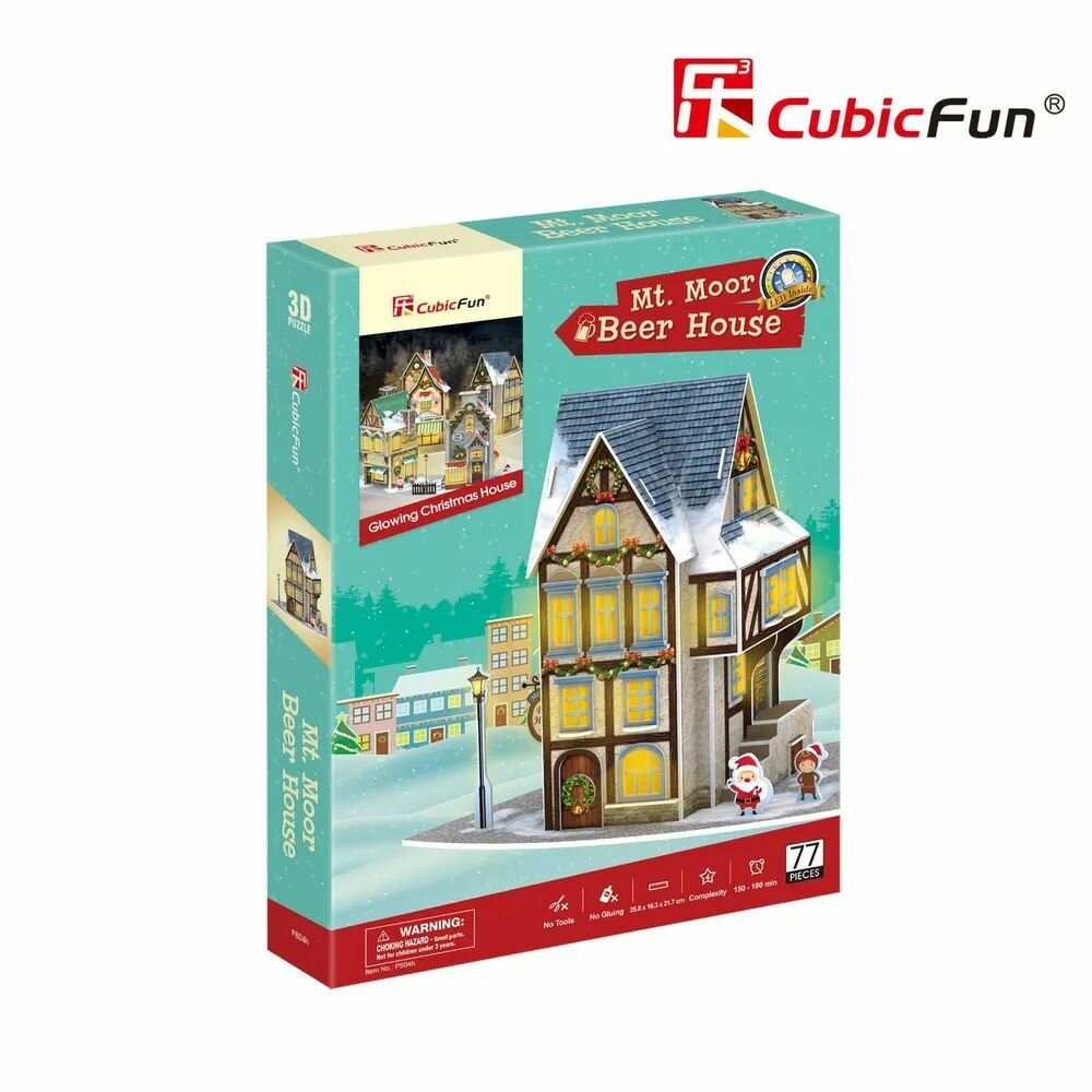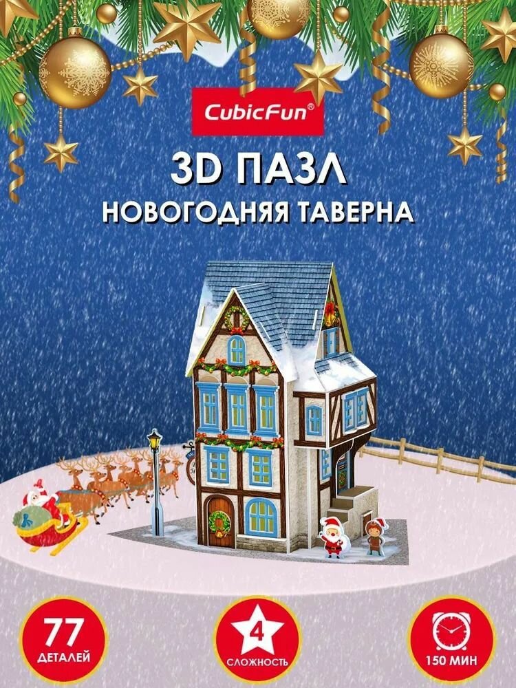 3D пазл CubicFun Новогодняя таверна с LED-подсветкой, 77 деталей
