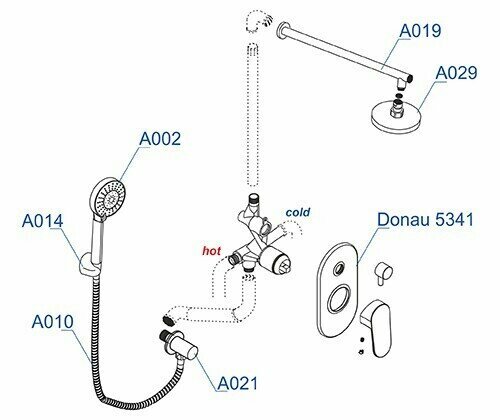 [Вывод из ассортимента] A14229 Встраиваемый комплект для душа с верхней душевой насадкой и лейкой