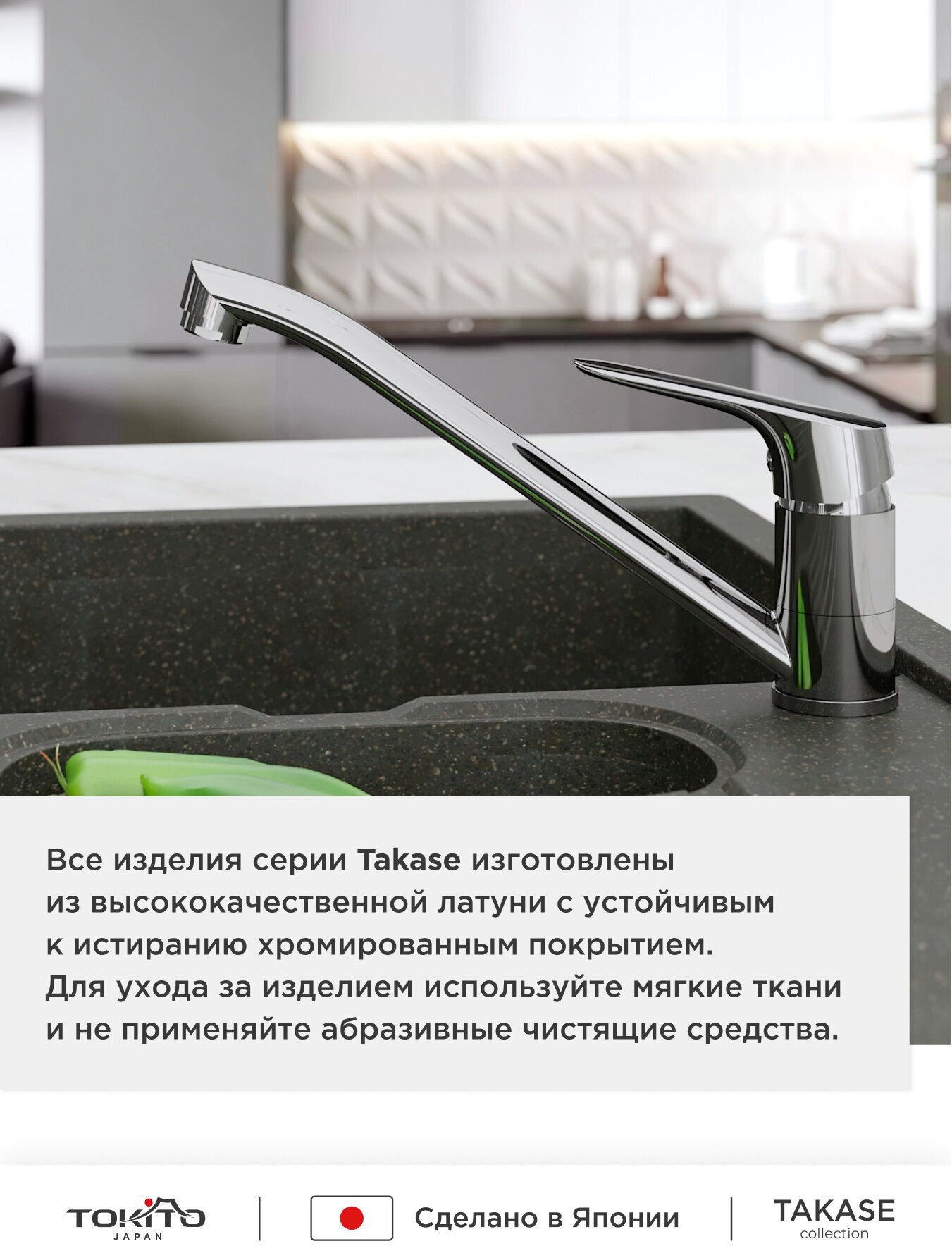 СохранитьСмеситель для кухни с поворотным изливом TOKITO TAKASE, рычажное управление интересное: