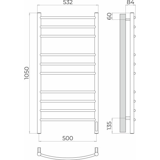 Электрический полотенцесушитель TERMINUS Классик П10 500х1050 Quick Touch 4670078544469