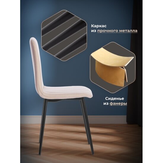 Стул обеденный ARC бежевый велюр, ножки металл черный, T-19938