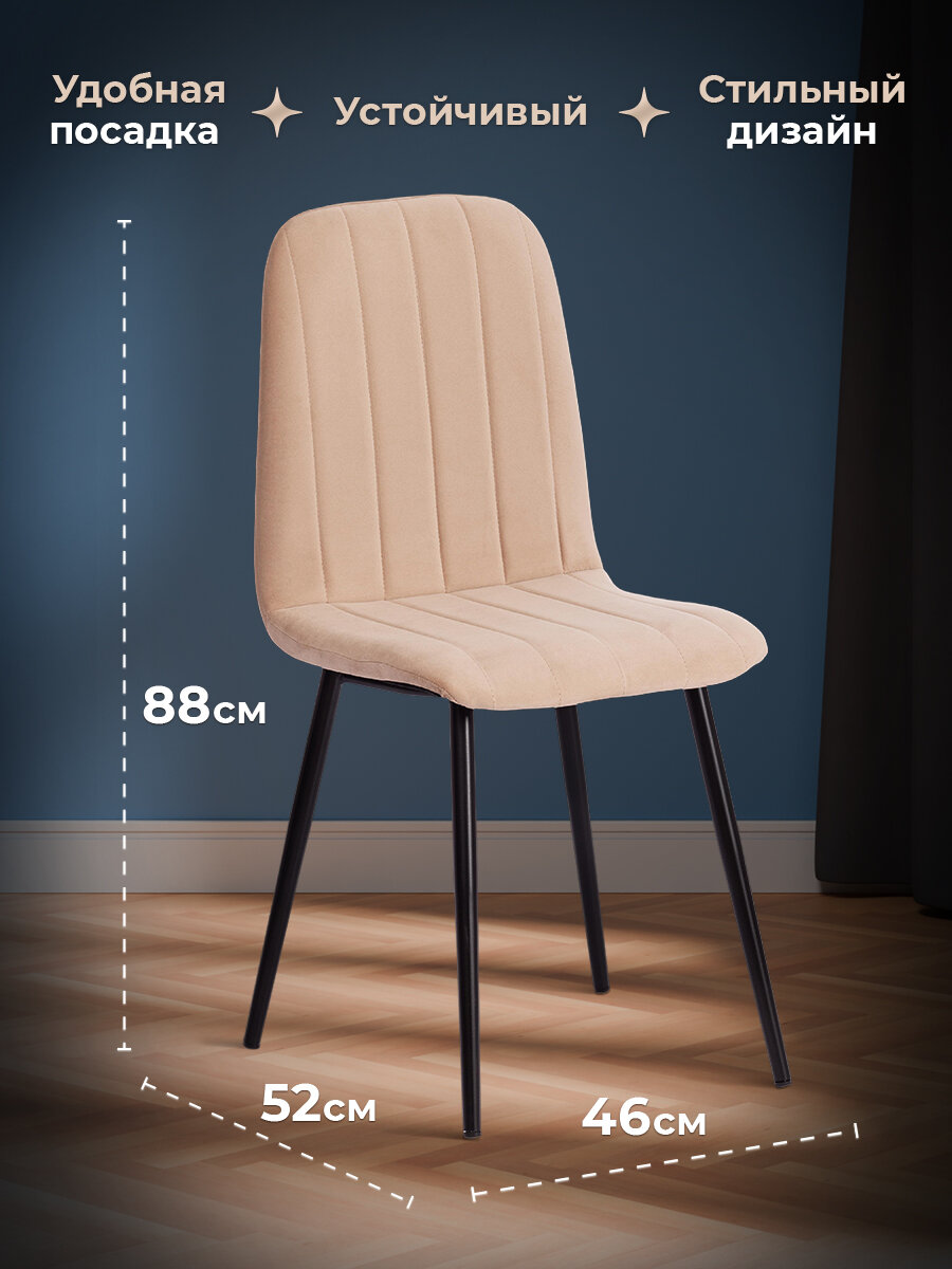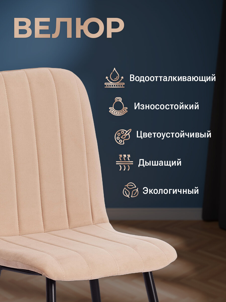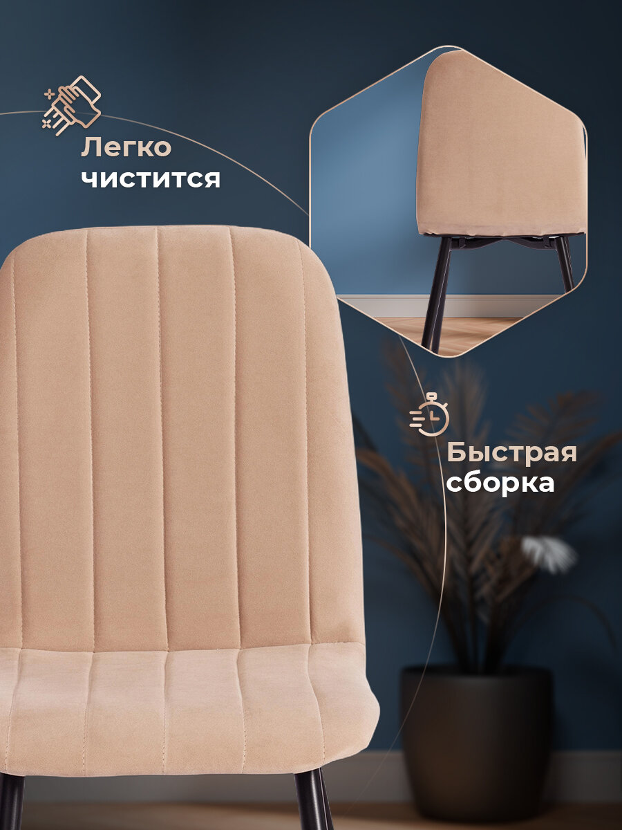 Стул обеденный ARC бежевый велюр, ножки металл черный, T-19938