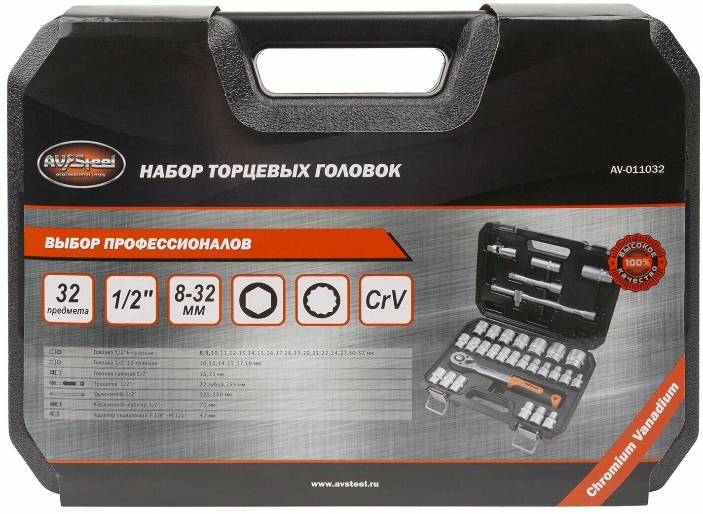 Набор инструментов AUTOVIRAZH AV Steel 1/2 профессиональный 32 предмета